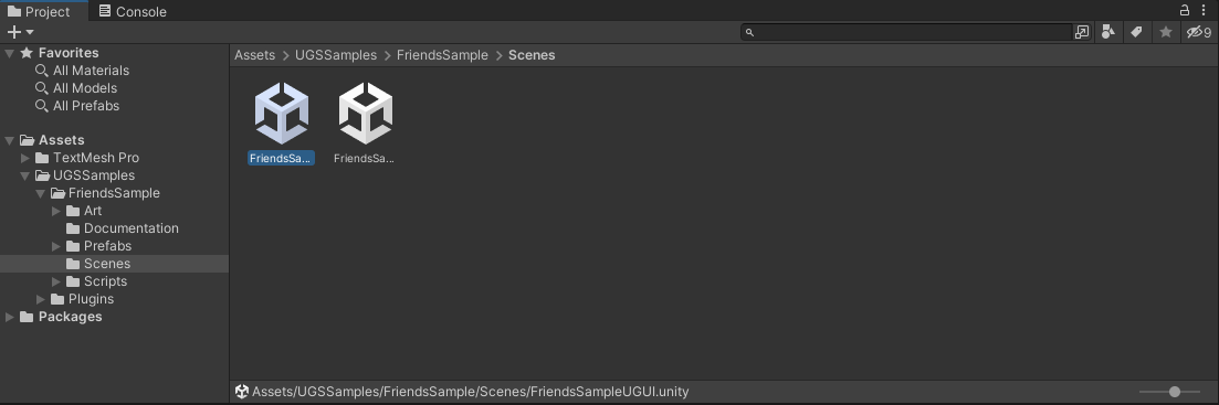 - 双击 **FriendsSampleUGUI 场景或 FriendsSampleUIToolkit 场景**。